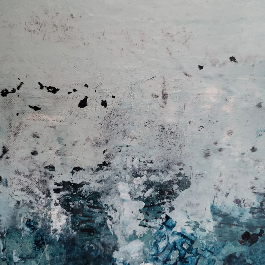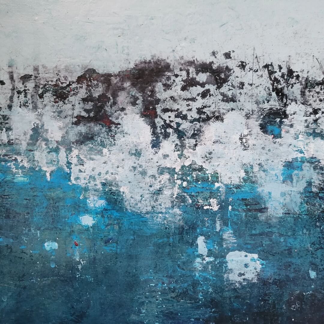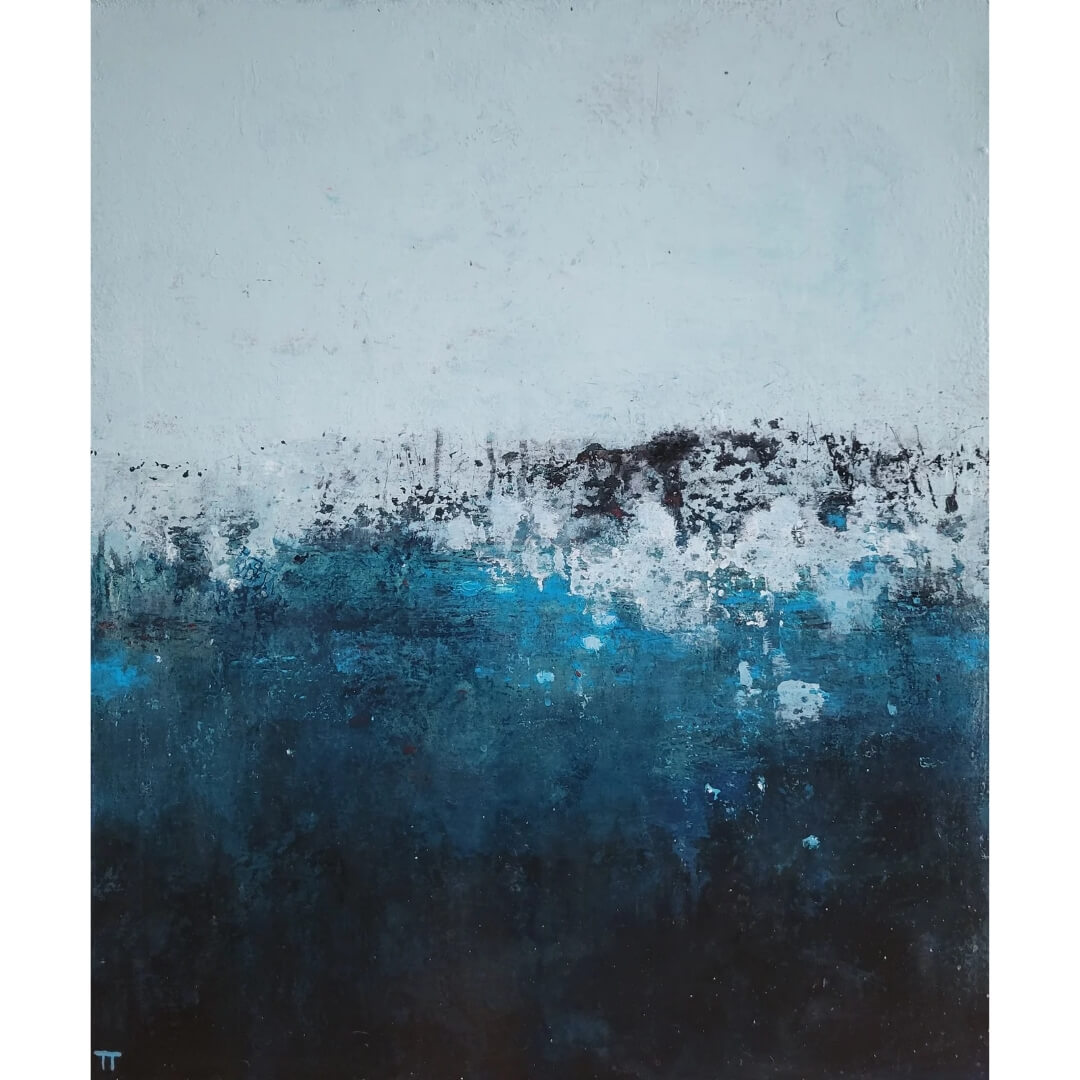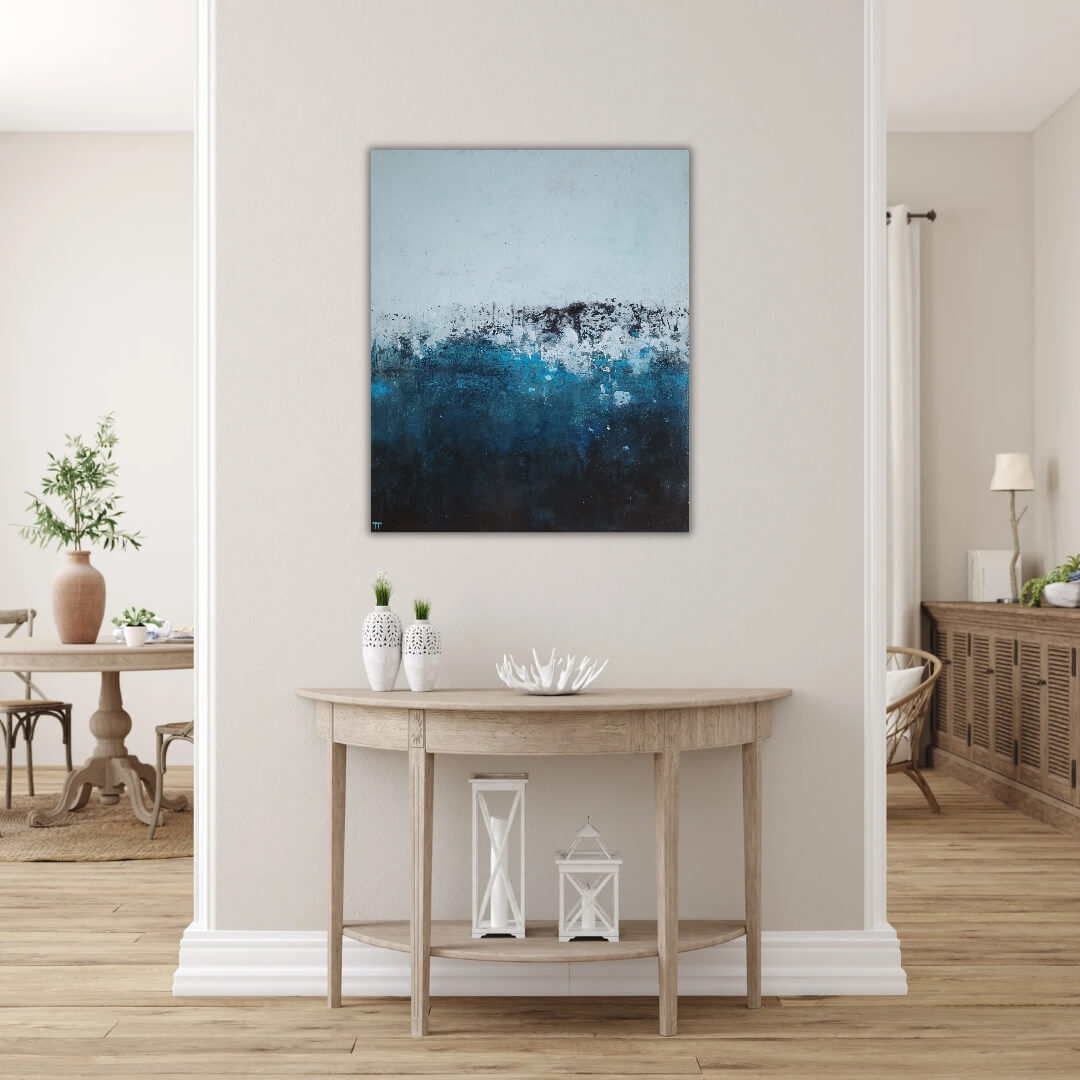 Syvä sininen vesi kutsuu sukeltamasn pinnan alle, omiin syvyyksiin. Pysäyttävä abstrakti maalaus.