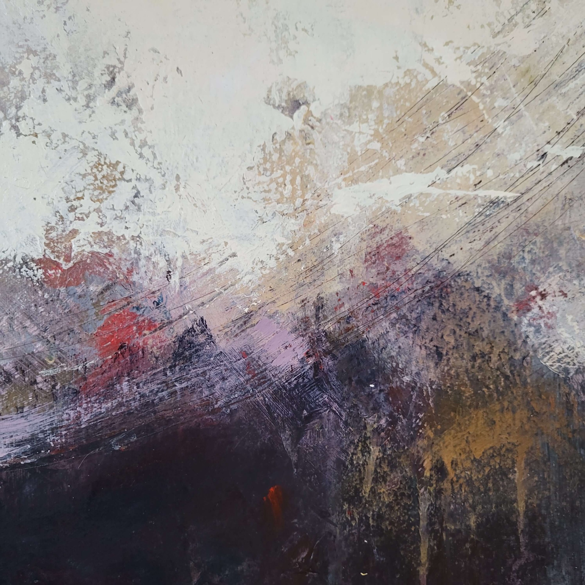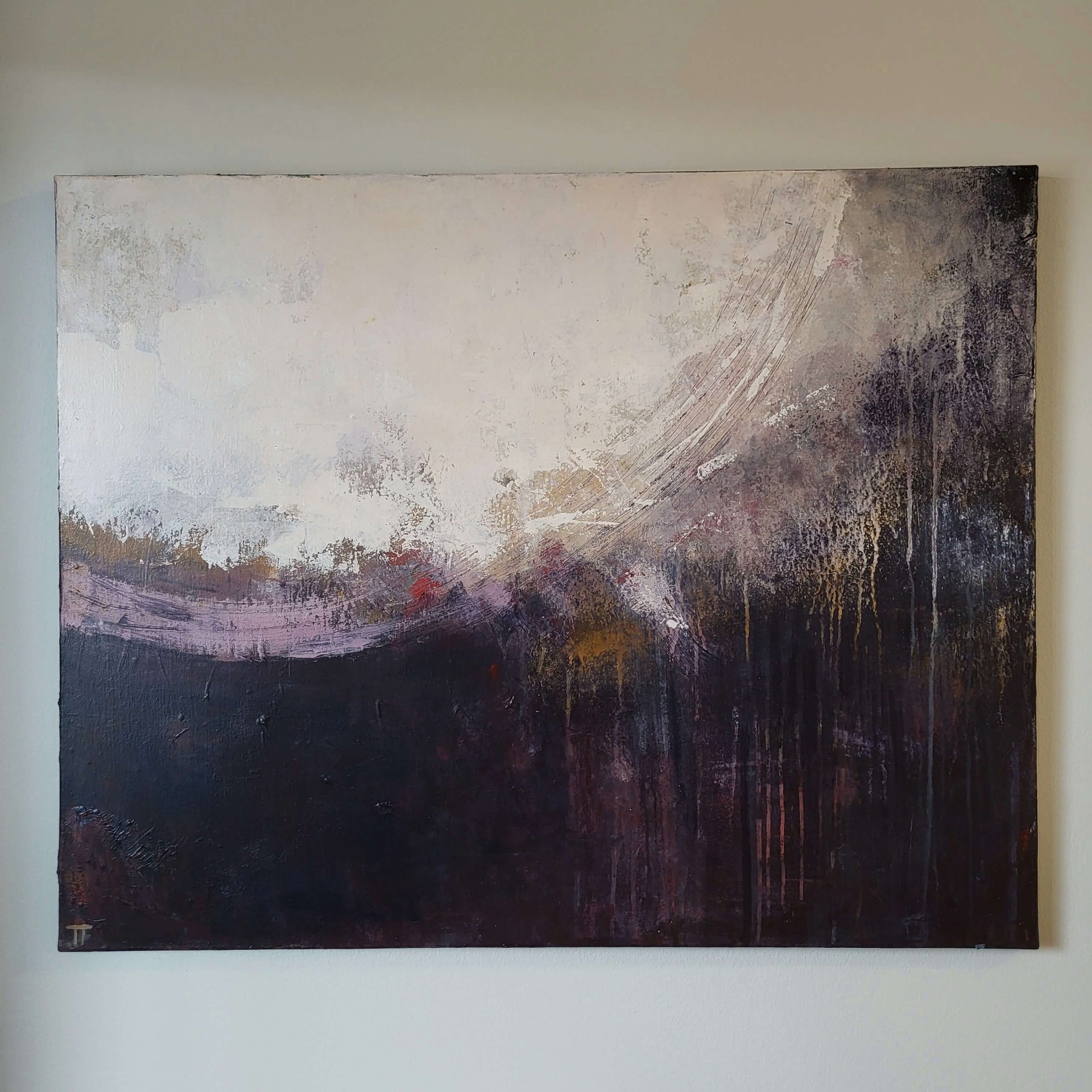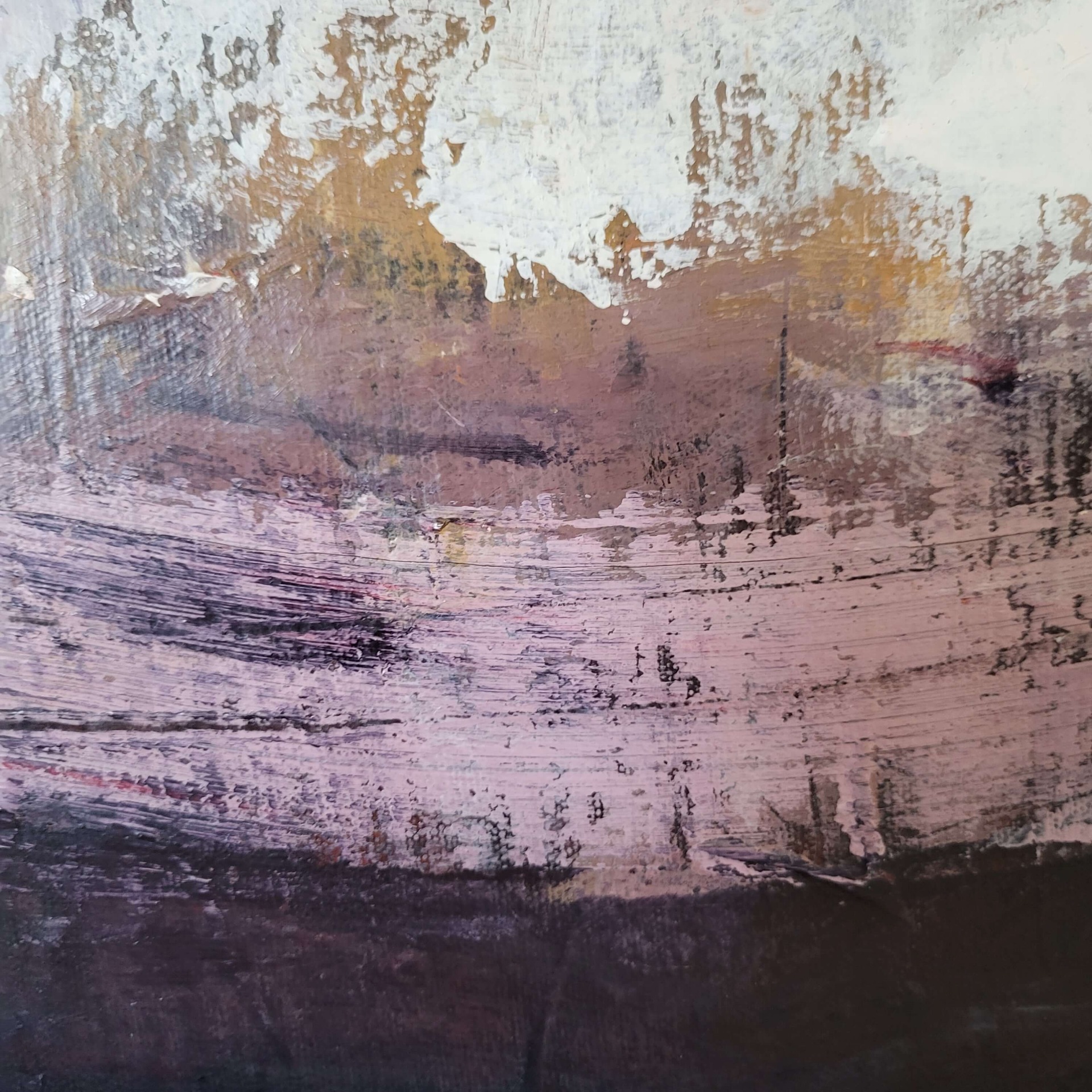 Rougea ja mielenkiintoinen abstrakti teos, jossa valo ja varjo kohtaavat. Alaosassa purppuran sävyjä.