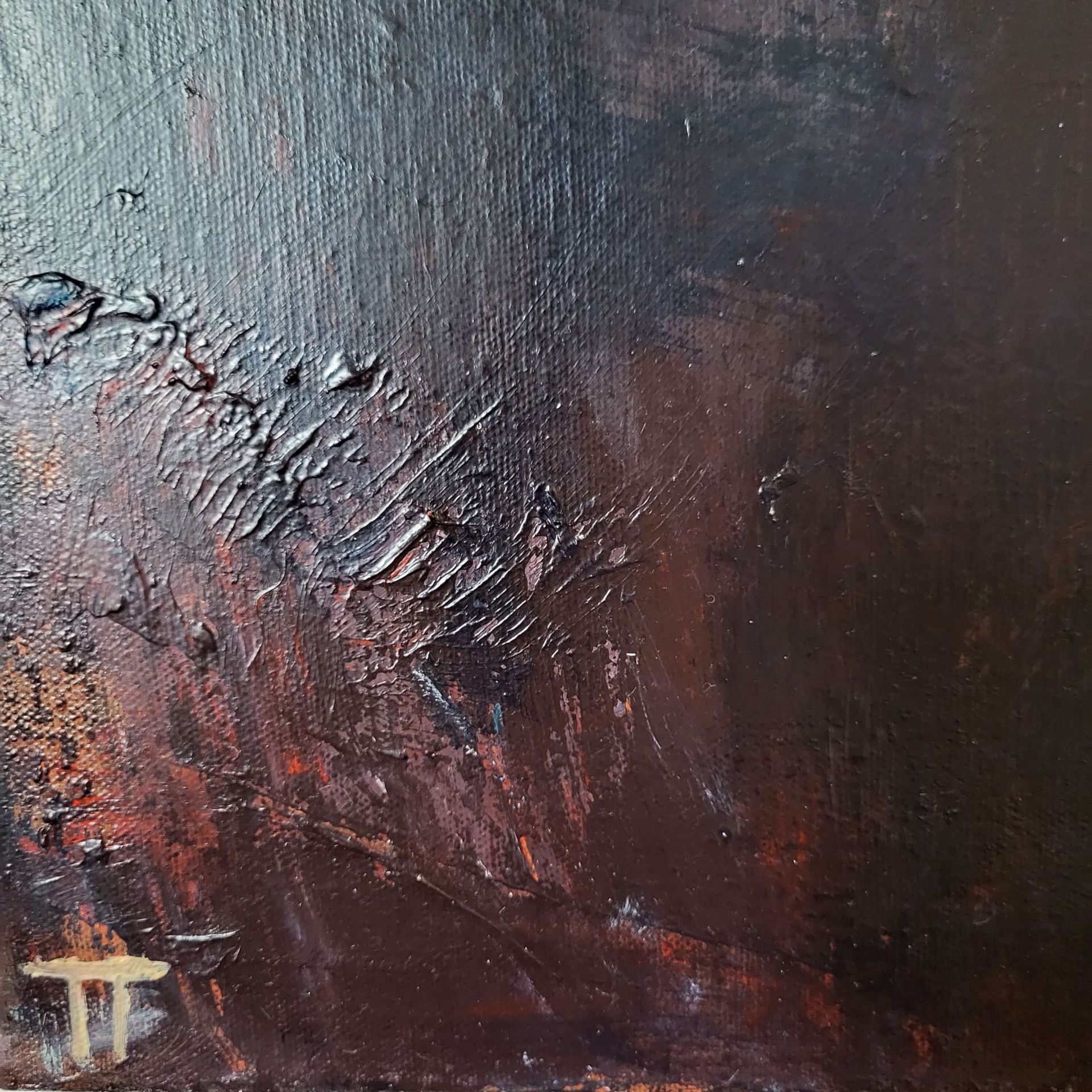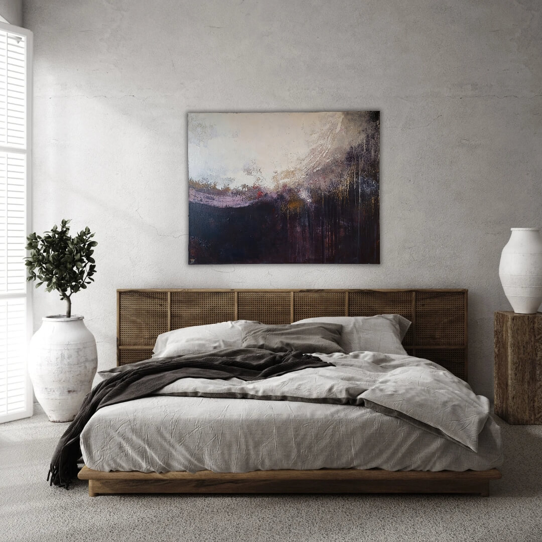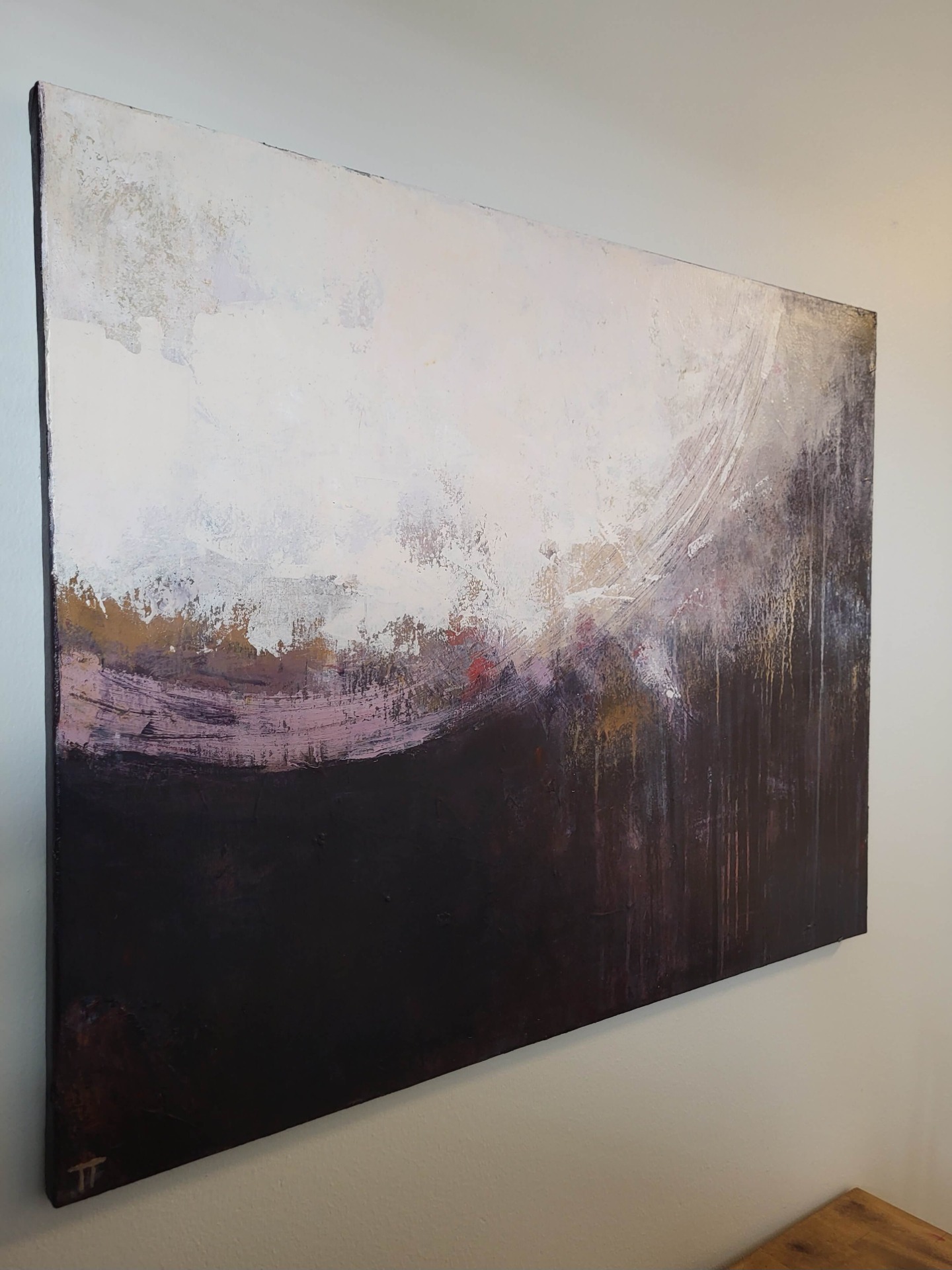 Rougea ja mielenkiintoinen abstrakti teos, jossa valo ja varjo kohtaavat. Alaosassa purppuran sävyjä.