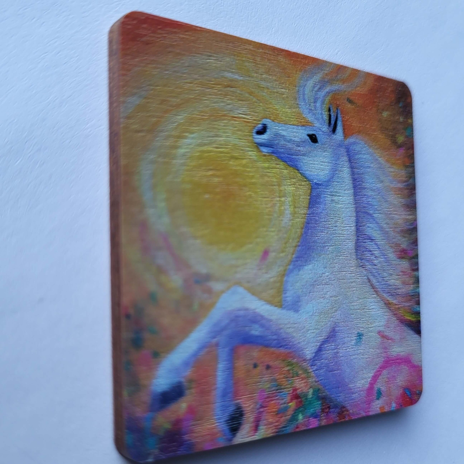 Tiina Tolvasen maalauksesta kuvituksensa saaneet jääkaappimagneetit on valmistettu suomalaisesta PEFC-sertifioidusta koivuvanerista (paksuus 3 mm), kuvapuolella mattalakka. Kääntöpuolella vahva pyöreä magneetti. Koko 5x5 cm.