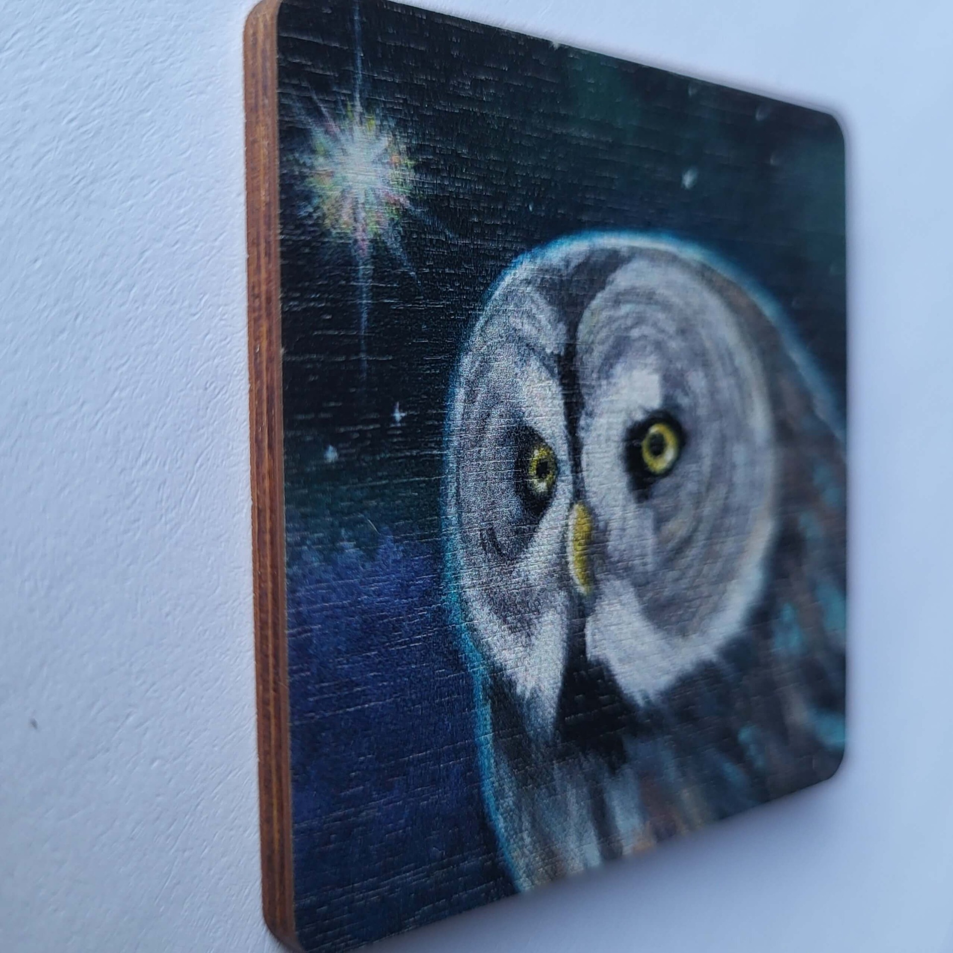 Tiina Tolvasen maalauksesta kuvituksensa saaneet jääkaappimagneetit on valmistettu suomalaisesta PEFC-sertifioidusta koivuvanerista (paksuus 3 mm), kuvapuolella mattalakka. Kääntöpuolella vahva pyöreä magneetti. Koko 5x5 cm.