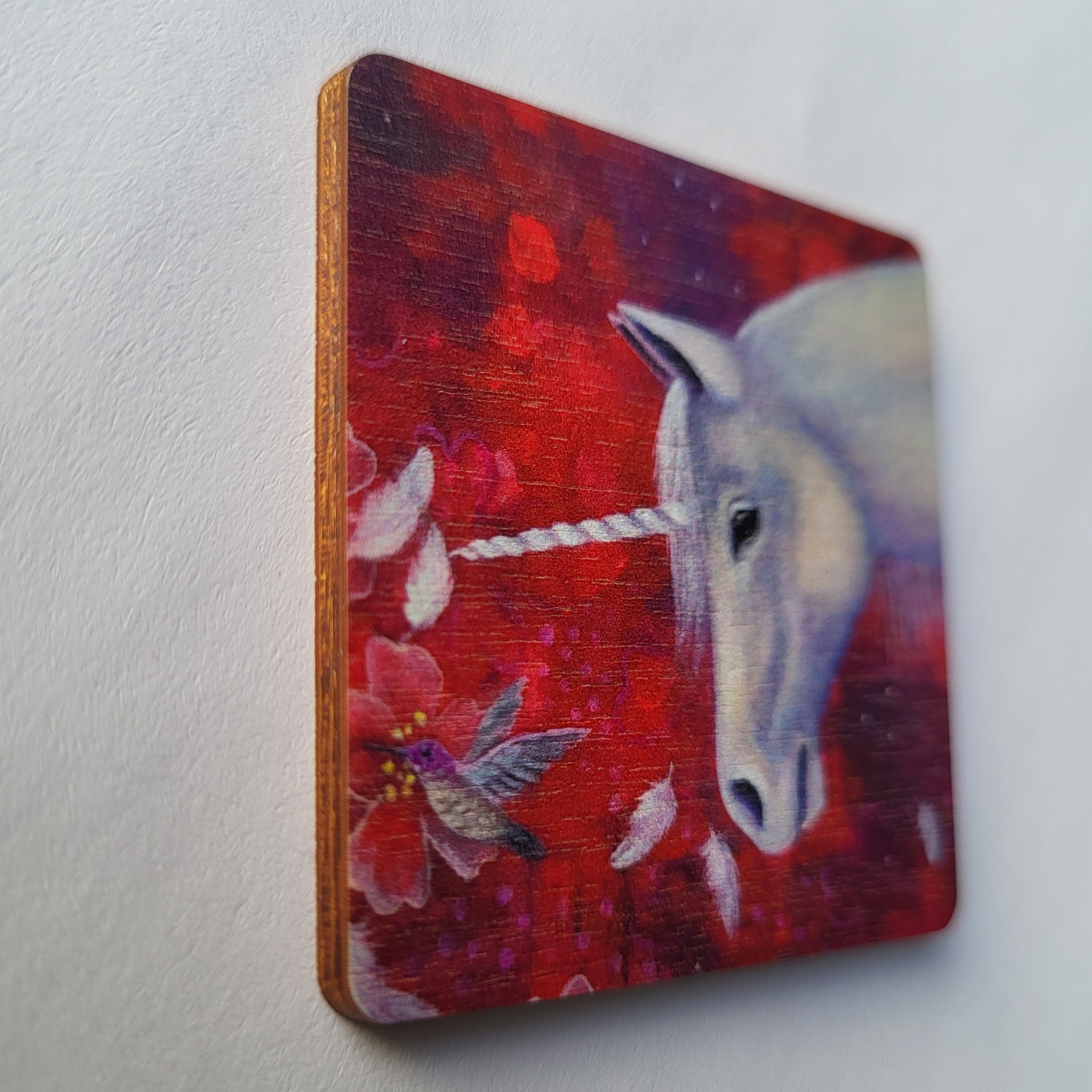 Tiina Tolvasen maalauksesta kuvituksensa saaneet jääkaappimagneetit on valmistettu suomalaisesta PEFC-sertifioidusta koivuvanerista (paksuus 3 mm), kuvapuolella mattalakka. Kääntöpuolella vahva pyöreä magneetti. Koko 5x5 cm.
