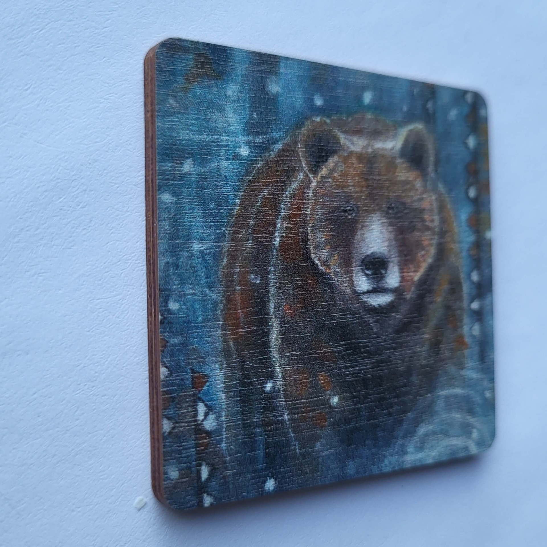 Tiina Tolvasen maalauksesta kuvituksensa saaneet jääkaappimagneetit on valmistettu suomalaisesta PEFC-sertifioidusta koivuvanerista (paksuus 3 mm), kuvapuolella mattalakka. Kääntöpuolella vahva pyöreä magneetti. Koko 5x5 cm.