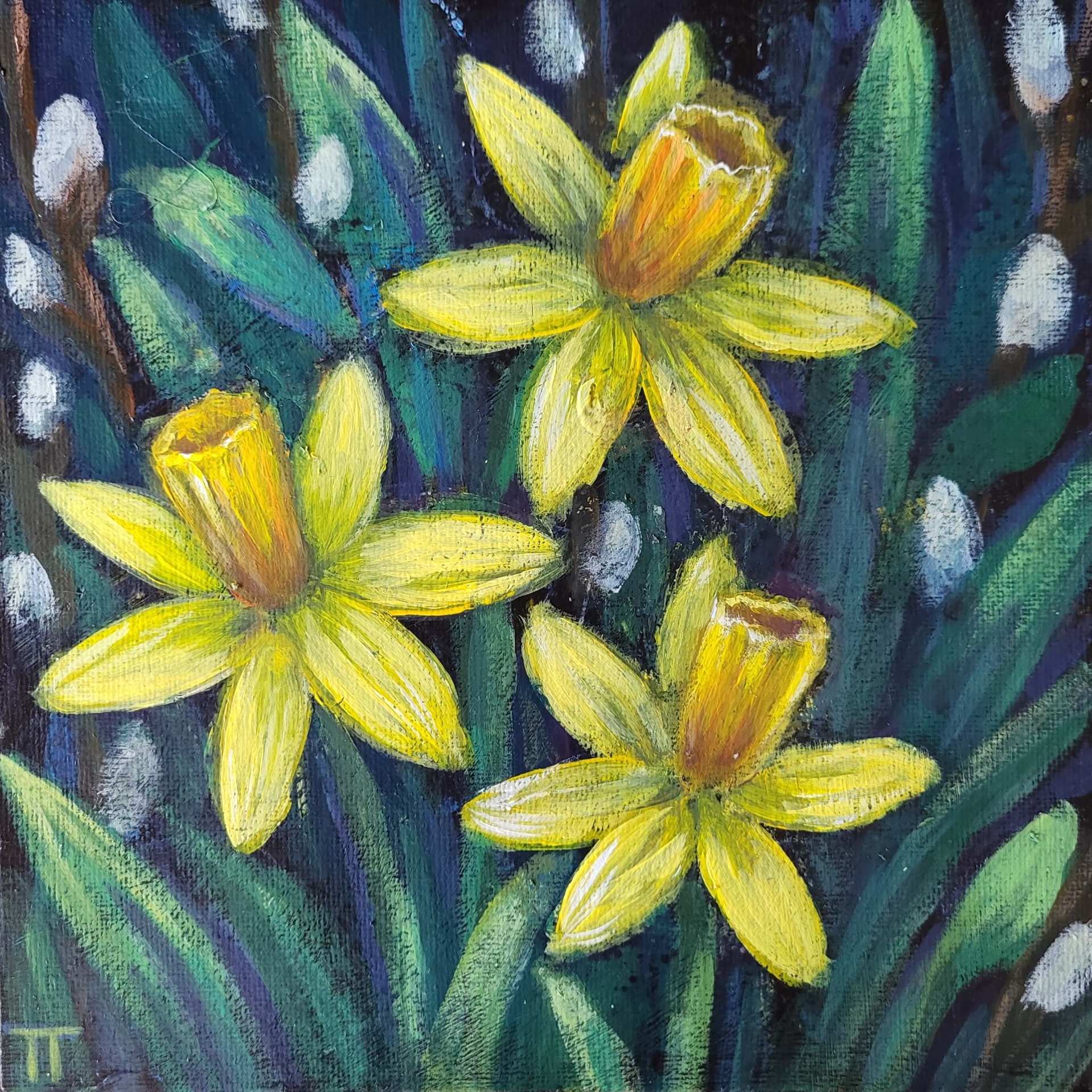 Rönsyilevän putarhan ensimmäisiä kukkijoita ovat Narsissit ♡ kukkataulu on ihana lahja vaikka äitienpäiväksi, valmistuneelle tai muuna juhlapäivänä.