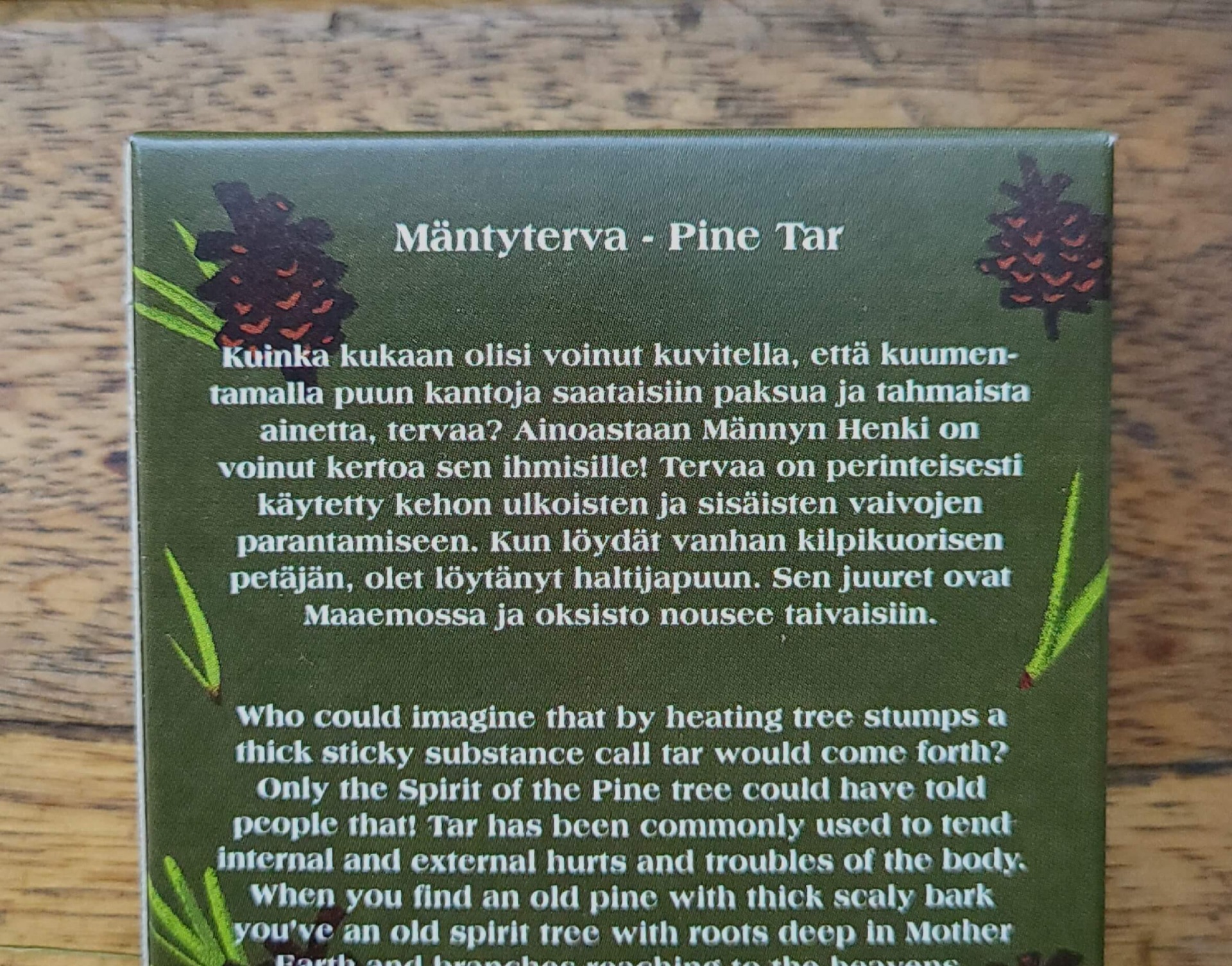 Voimallinen vegaaninen luonnonsaippua jossa on perinteistä suomalaista mäntytervaa.