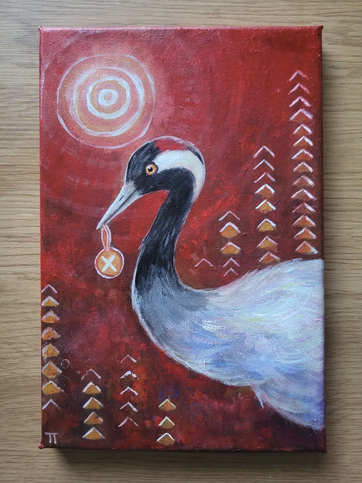 Kurki upottaa pitkän nokkansa suolampeen ja löytää sieltä jotakin arvokasta. Kun käännyt sisäänpäin ja katsot itseäsi, mikä on sinun aarteesi? Mikä on sinun lahjasi, jota voit lähteä kasvattamaan, kehittämään ja jakamaan maailmalle? Näe sen arvo ja lähde viemään sitä eteenpäin.